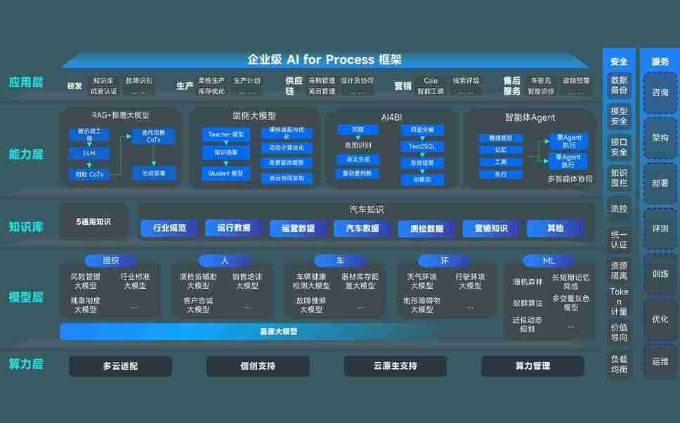 金沙990CC问学智车解决方案是一套基于AI技术的汽车行业智能化系统,,覆盖从底层算力到顶层AI应用的全栈方案。。。方案由算力层、、、模型层和应用层组成:算力层,,方案支持多种一体机配置,,,具备云端灵活部署、、、、多云适配以及动态优化计算资源的能力;模型层,,,,金沙990CC问学平台版提供了企业级AI应用一站式构建与管理平台,,,支持基于后训练强化技术的汽车企业专属模型的训练、、、评测和运营;应用层,,金沙990CC问学DeepSeek版提供包括超级员工、、、、智能招采、、、智能营销、、、、智能客服、、、、AI for BI等一系列解决方案,,,,可助力汽车行业实现数字化转型,,,让管理更智能、、、、响应更敏捷。。。。